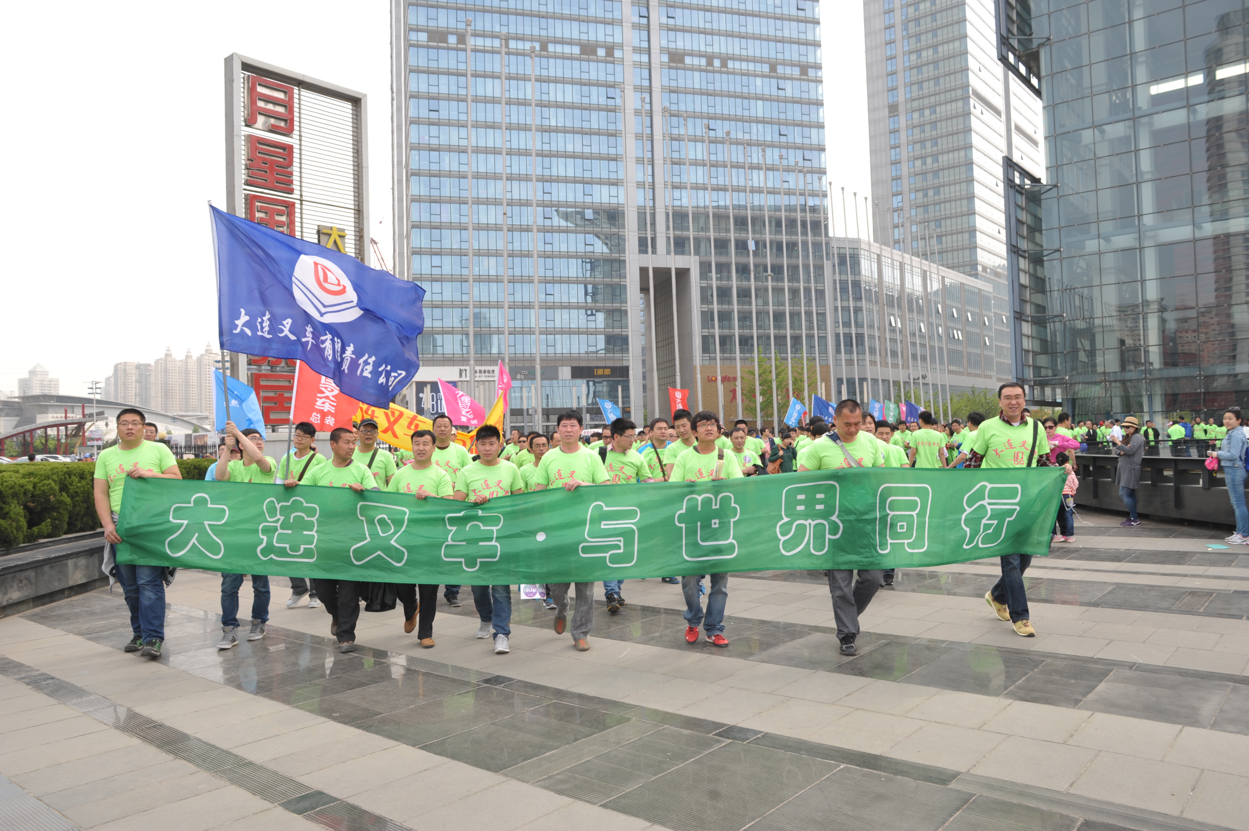 本次徒步大會仍以“健康、和平、交流”為主題,在輕松愉快的徒步過程中,員工們收獲健康、傳遞和平、增進(jìn)交流、放松精神、愉悅身心、溝通情感。“大連叉車與世界同行”、“大連叉車向全市人民問好”、“大連叉車,叉車搖籃,無尚榮光”、的大型條幅以及“大連叉車與您共贏”、“大連叉車與您同行”的小橫幅在徒步的人潮中格外醒目,引來眾多徒步愛好者、攝影愛好者的目光,四面藍(lán)色的大叉廠旗和15面彩色的支會旗迎風(fēng)飄揚(yáng),展示著大連叉車朝氣蓬勃的精神風(fēng)貌, 大叉綠色軍團(tuán)似一條巨型長龍,蜿蜒在星海灣徒步大會主會場,隊伍中的每個員工都昂首挺胸、精神抖擻,無時無刻不在向外界展示著作為一名大叉人的那份榮耀和自豪。